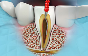 Root canal treatment, also known as endodontic treatment is a dental procedure in which the diseased pulp tissue is removed and the inside of the tooth is cleaned and sealed with a special filling material.